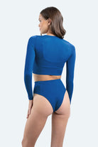 The Madeira High-Waist Bottom in King Blue is designed to provide both style and comfort. This high-waist bikini bottom offers a flattering fit with medium bum coverage, beautifully enhancing your silhouette. Made from luxurious Italian Carvico Econyl fabric, it ensures durability and a buttery soft feel. The deep, regal blue colour adds a touch of elegance. Pair with the Madeira or Maldives bikini top and of course our Sunshield top in king blue for sun protection whenever needed.