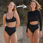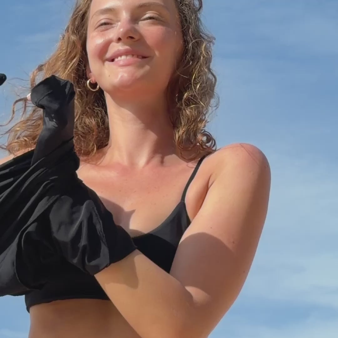 A sleek, sculpting bikini paired with the signature sunshield top for effortless coverage in and out of the water. Designed for swimming, the set offers UPF50+ protection where sunscreen fades — so you can move seamlessly from lounging to the sea.