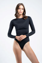 Stay protected and elegant with our UPF50+ Sunshield Top. This long sleeve crop top is designed to be worn over your swimsuit or bikini, perfectly matching in style and colour. Crafted from high-quality, sun-protective fabric, it blocks over 98% of harmful UV rays, ensuring you stay safe under the sun. Ideal for swimming or watersports like surfing or paddle boarding. When wet, it serves as an excellent cooler outside of the water, making it perfect for boat trips where sun protection is essential. Additionally - wet or dry - it provides protection from the wind, ensuring comfort in varying conditions. The sleek design adds a touch of elegance to your beachwear, ensuring you look and feel great all day long while staying protected.
